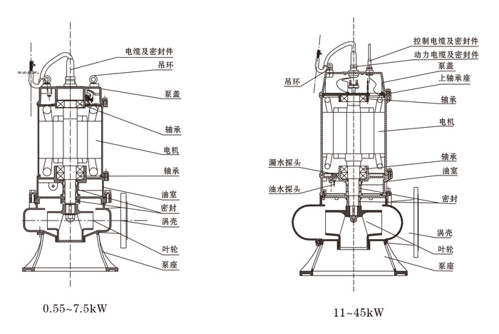 2、無內(nèi)自流循環(huán)冷卻系統(tǒng)的泵,電機部分露出液面不得超過電機的1/2.